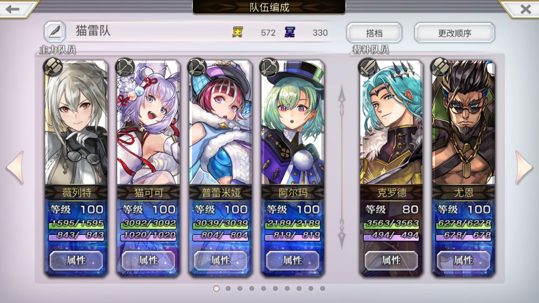 众所周知,猫游不存在一支万能的队伍或一个恒定的公式,尤其是在面对机制千奇百怪的隐王时,更应当随机应变、见招拆招,猫雷队亦是如此。以下是通常情况下,我认为较好的构筑(后续会说明原因),仅供猫友们参考: