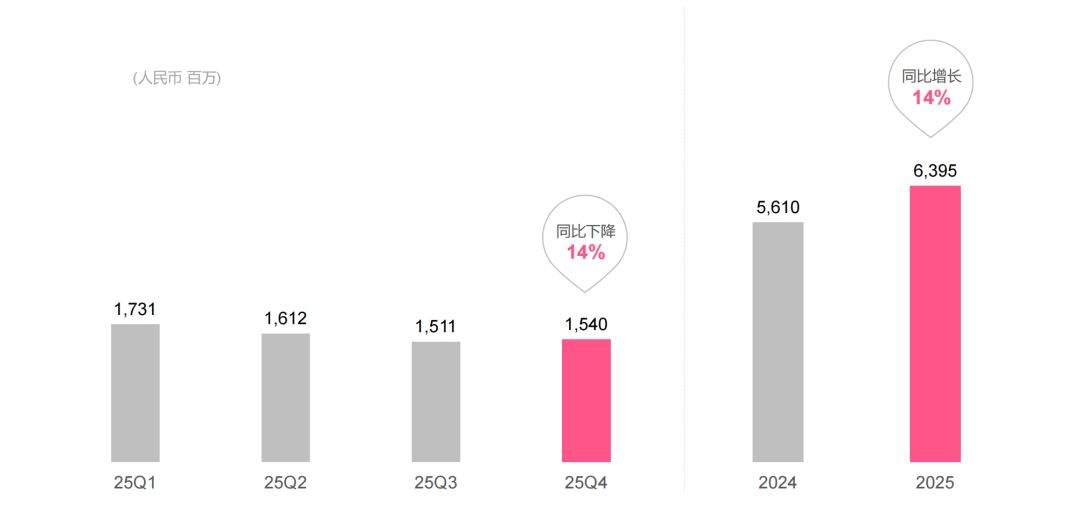 报告显示,2025全年B站游戏业务收入达人民币63.9亿元,同比增长14%,占公司全年营收的21%;其中Q4游戏业务收入人民币15.4亿元,同比下降14%。