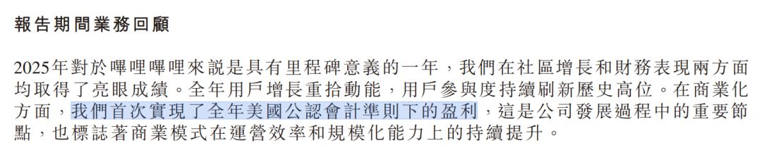 值得注意的是,2025年B站全年净利润为11.9亿元,扭亏为盈;经调整净利润为25.9亿元,扭亏为盈——今年是B站上市7年以来,首次全年盈利。
