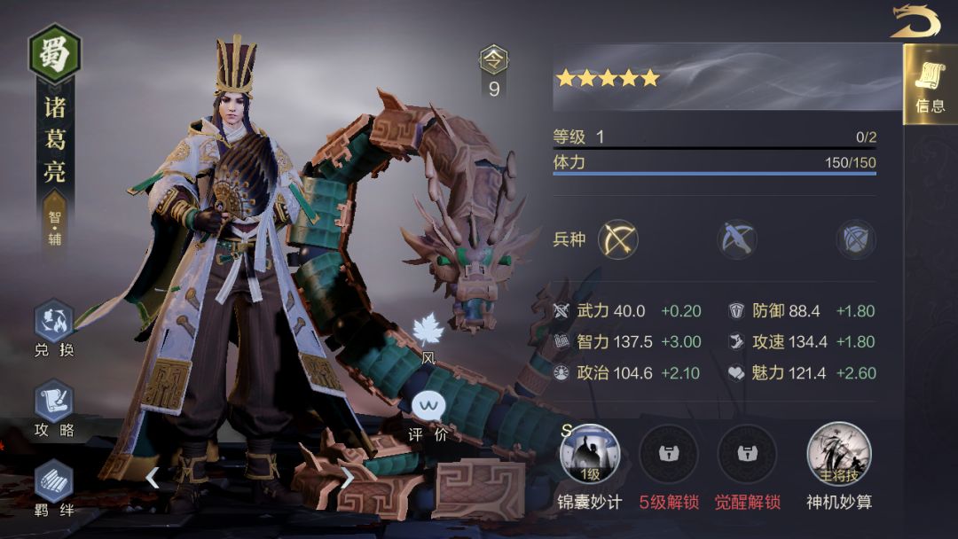 防御和智力都很高的武将,在本阵容中可以和诸葛亮和庞统搭配在技能造成神算伤害时候可以恢复大量的兵力。