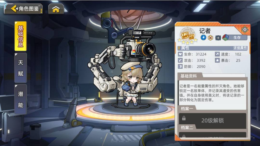 新增能量属性的歼灭角色-记者(专属接见获得)