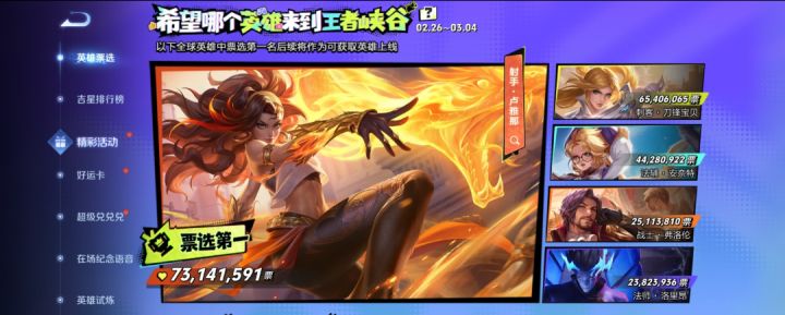 王者荣耀全球英雄投票活动正式结束,卢雅那以超高票数夺得第一,确定后续上线峡谷。此次投票吸引大量玩家参与,射手英雄成为主流选择,核心原因在于当前高分段发育路可选英雄偏少,强势射手集中在公孙离、敖隐等少数几位,中低分段影响不大,但高分对局环境固化,玩家迫切需要新射手丰富阵容。卢雅那凭借独特机制与射手定位收获大量支持,上线后有望改变高分段射手格局。刀锋宝贝虽未在本次胜出,但人气同样不俗,官方表示将参考投票情况,后续仍有较大概率上线。不少玩家认为,新射手加入能缓解位置内卷,提升对局多样性,你更期待哪位英雄登场呢?