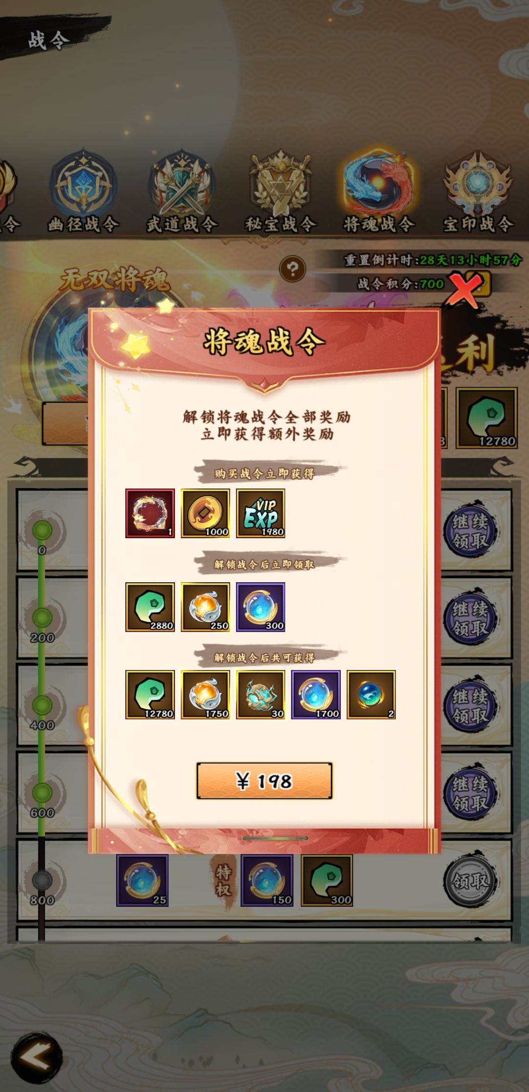 6、每个月1号会开通封印长阶,一定要完成,可以兑换非常多的东西。另外商店-武道-群英演武,每月也可以将魂相关材料。(注:如氪佬,直接开通战令)