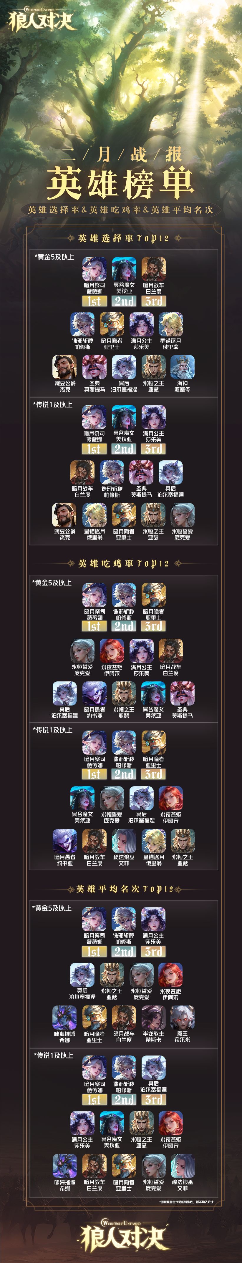 《狼人对决》2月英雄排行榜来啦!