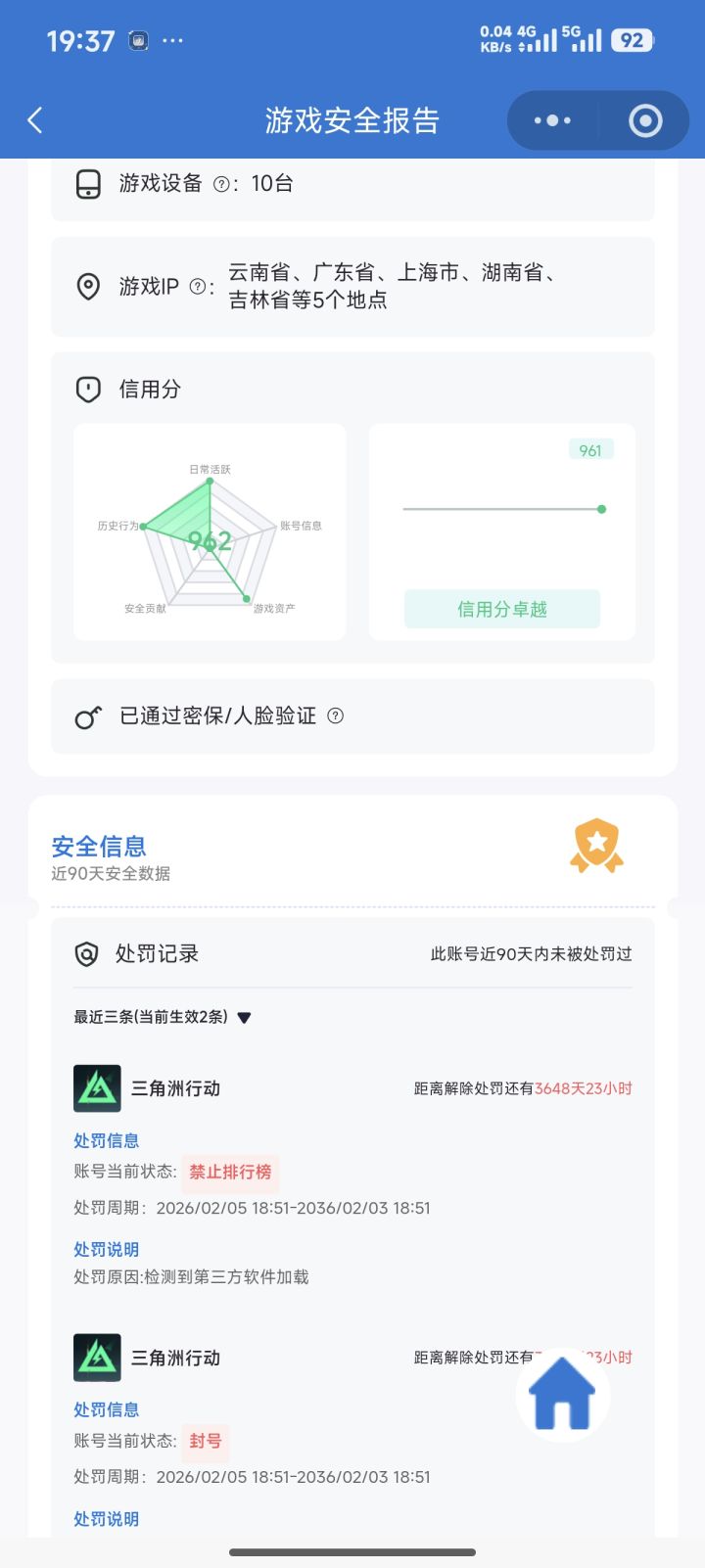 我是《三角洲行动》的正式玩家,本人账号【QQ:2236375236】游戏ID【那我变小熊oi】于【2026年2月5日】被封禁10年(3650天),处罚原因【检测到第三方软件加载】