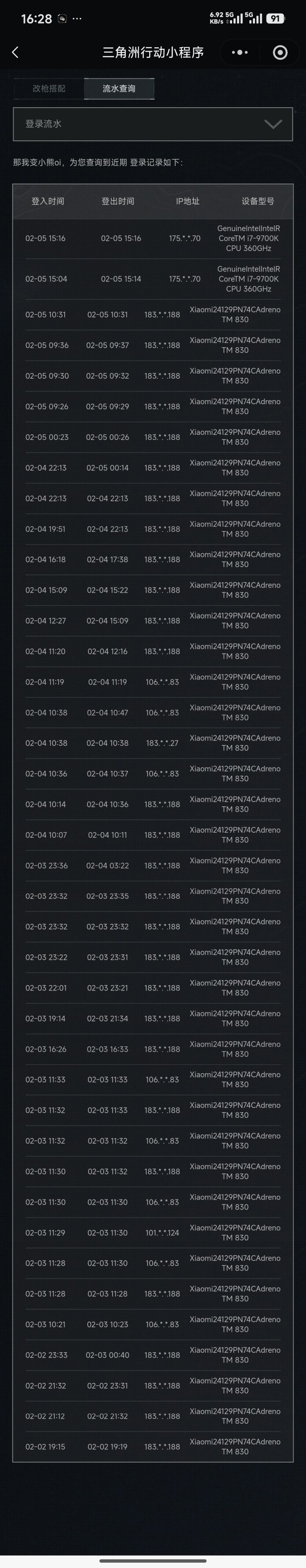 附以下异常设备登录记录及证明材料望官方人工核实,如有需要,可附上个人的电脑操作日志