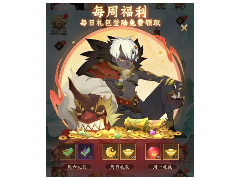 每周六至周一,全服发放周末福利,登录即可领取元宝、天相材料!除此之外,冥界幽府福利加码,3月7日-3月8日该玩法将触发【阎王献礼】活动,期间冥界幽府奖励都将翻倍!更有双倍幽冥币掉落。