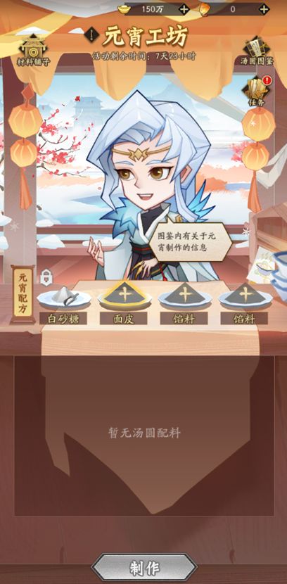 吃一碗元宵,盼一年团圆!三界神仙邀请道友们一起来做元宵啦!【元宵工坊】限时开启!道友们需使用白砂糖、面皮、馅料进行不同组合搭配制作出不同的汤圆,其中白砂糖为固定制作道具,道友们需使用【上元灯火】在材料铺子兑换不同面皮以及馅料进行元宵制作,进而点亮元宵图鉴~点亮不同图鉴即可获取马年元宵奇宝(内含神兵碎片21选1、御灵碎片17选1)以及海量元宝等奖励!