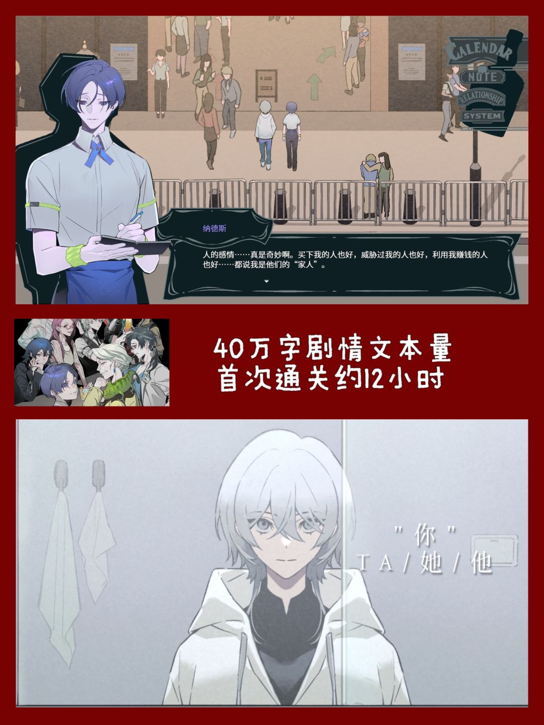 本作并没有传统意义上的分支选择,你可以自由的选择交往对象,单线或。。。多线发展,虽然游戏还没有上线但最让我感兴趣还是制作组将R15的分级显示发挥到了极致,每位角色也都有各自的深度剧情@今夜为您特调 详情可以康康他们官方~