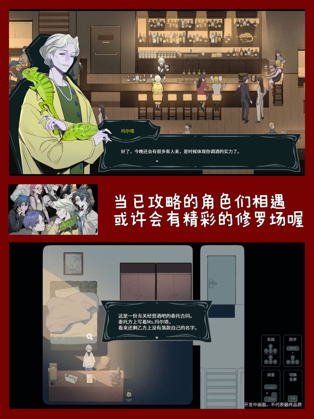 你是否会拥有一段或几段深入的亲密关系?你又会怎样引导他们?做出不同的选择,发现未来不同的可能性。每个角色都会根据你的能力和酒吧经营情况有2种不同的结局。
