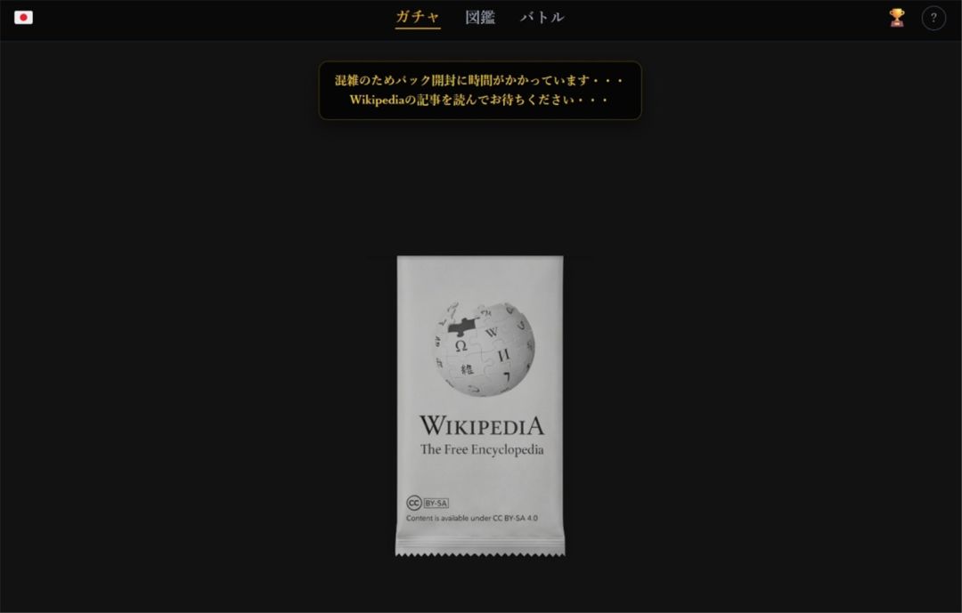 象征着人类集体知识库的线上百科全书维基百科,居然被做成了一款卡牌对战游戏!这款由日本个人开发者 harusugi 制作的网络游戏《Wikipedia Gacha》,近期在游戏社群里意外爆红,玩家可从海量维基百科条目中抽卡,以对应文章的品质数值展开对战,脑洞大开的创意瞬间吸引了无数网友的关注。