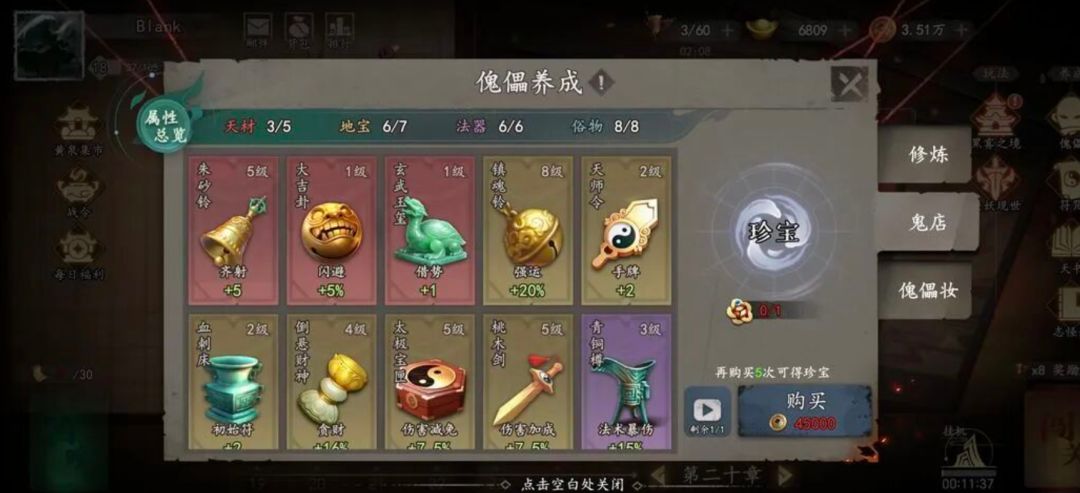 三.商店1.每周限购的3次抽奖卷必买2.每日商店五帝钱、天书残页必买3.商店武器九环锡杖,没往生弓的可买,有往生弓的不买4.每周限购的3次体力肝帝可买5.每日商店抽奖券可买6.衣服怒罗汉不买,完全没用