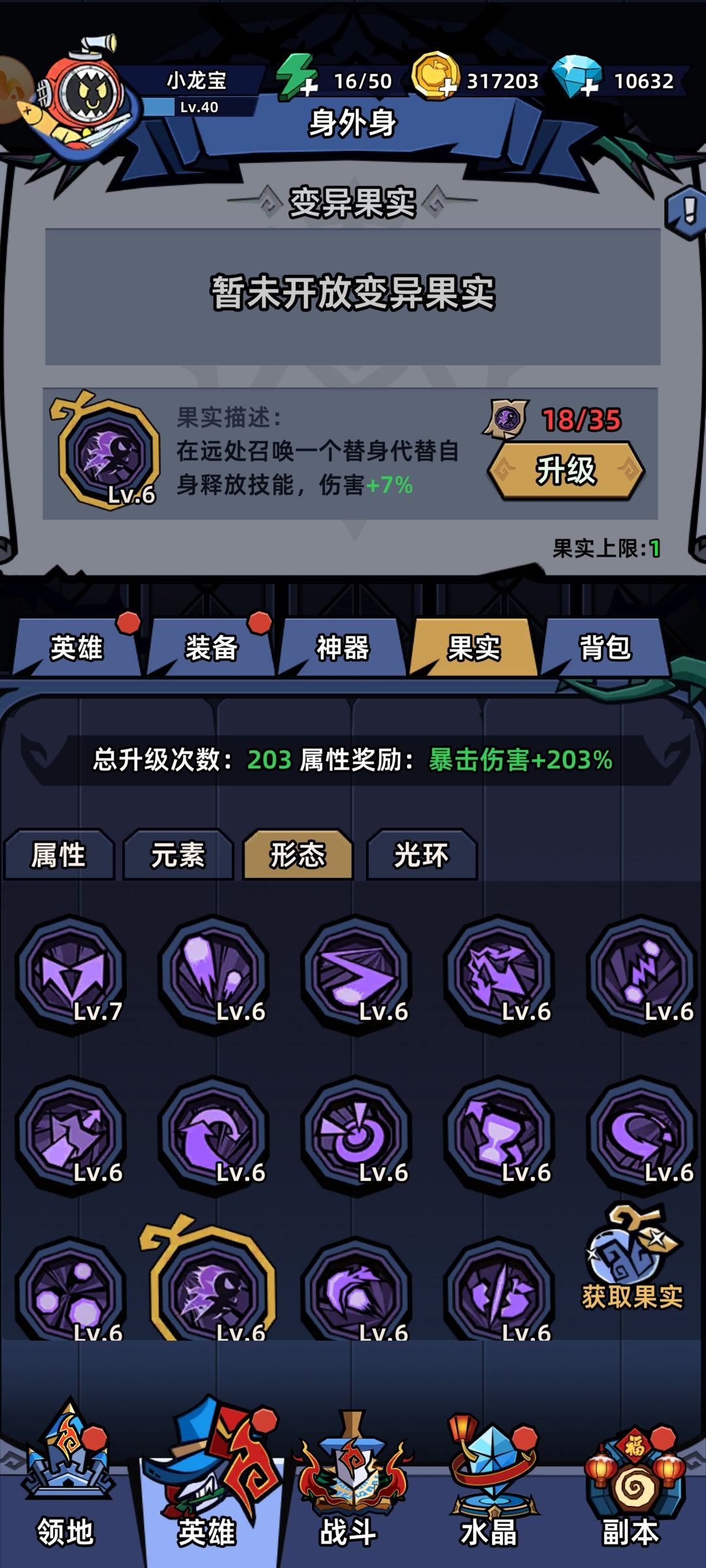 前七天推到6-3自选个s飞机就能把飞机金色了。金色的飞机拥有更强力的输出~导弹。这是飞机的最主要伤害。想要推图推得远一定要多凹开局果子。飞机有强力的果子是过图的关键。分享一个小技巧,图四是变异果子,我一般叫数量1。数量1和身外身果子结合有合体技。可以使飞机拥有无限数量+3的效果,配合分裂果子可以全屏炸。最后希望各位新玩家都能抽到飞机。氪佬全是心愿。