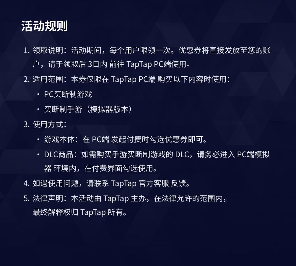 优惠券须在TapTap PC版使用,请移步至PC浏览器搜索TapTap官网,