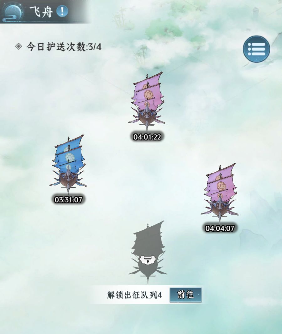 掌教师叔通过悟道台参悟可解锁更多出征队列,能同时派遣更多飞舟完成任务,最多可同时派遣4支出征队伍。