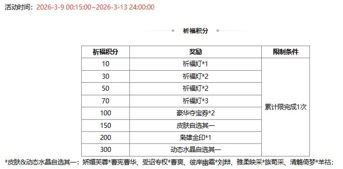 活动时间:2026-3-9 00:15:00~2026-3-13 24:00:00