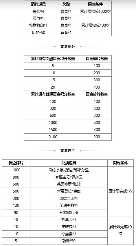 2、若兑换奖励是在此次活动前已拥有的永久武将、皮肤、三国秀,则无法重复兑换 ;