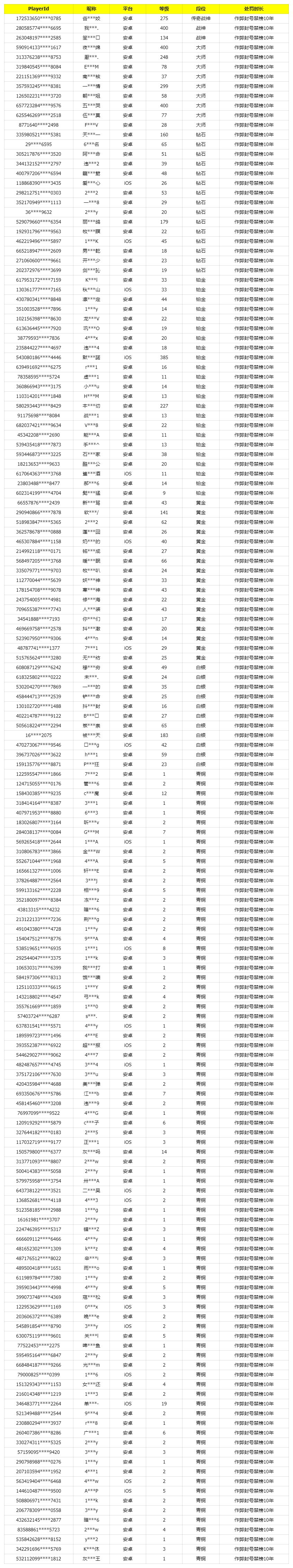 我是瘦普,最新外挂处罚公告来了。
