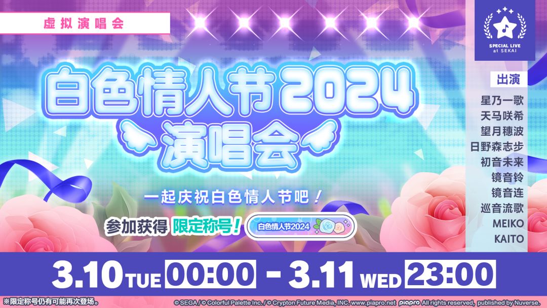 我们将于3/10(二)和3/11(三)举办「白色情人节演唱会 2024」。