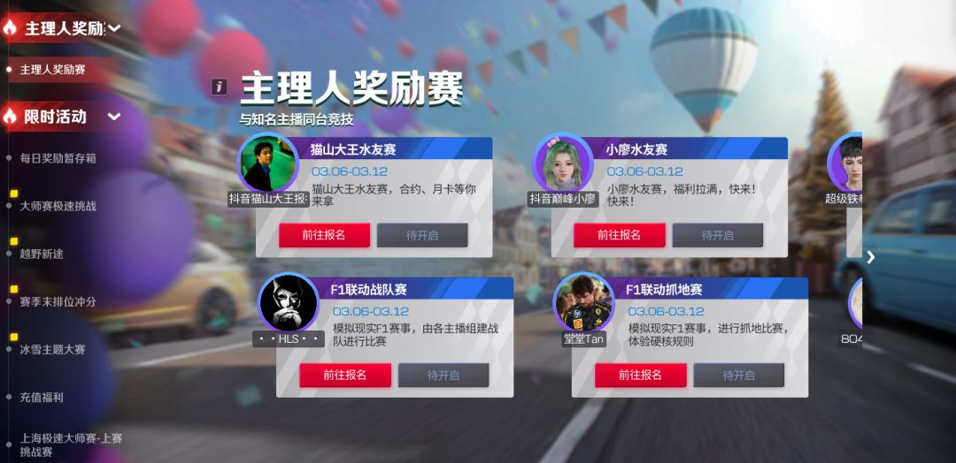 更多活动规则和精彩竞赛,打开游戏,进入「活动」-「主理人奖励赛」专题页,锁定你心仪的赛事,油门踩到底,快乐不停歇!