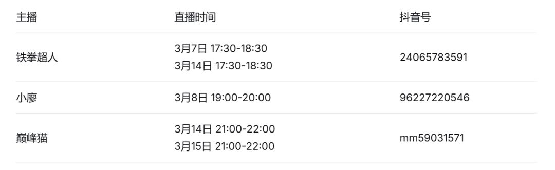 参与方式:码住时间表,锁定对应主播的抖音直播间,到点抢房,先到先得!