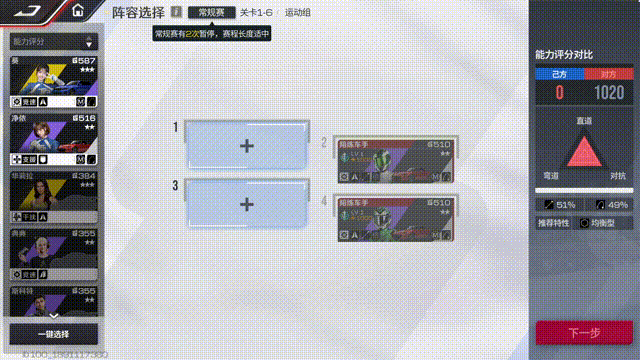 经营车队时,大家可以派出车手参与各类赛事,比如常规赛,赛程适中且有2次暂停机会,后续还会解锁更多赛事。赛前可通过阵容选择对比对方评分,让更有优势的车手出战,还能选策略为车手提升场内增益!