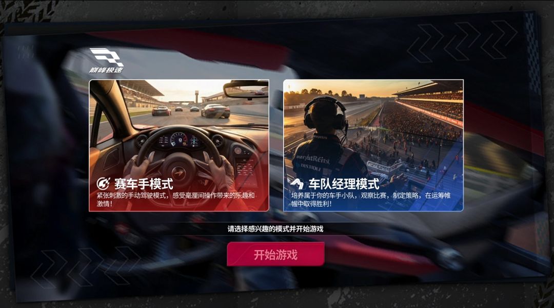 进入玩法后,车手们可以自由选择赛车手模式或车队经理模式,而车队经理模式就是本次测试的核心玩法哦~