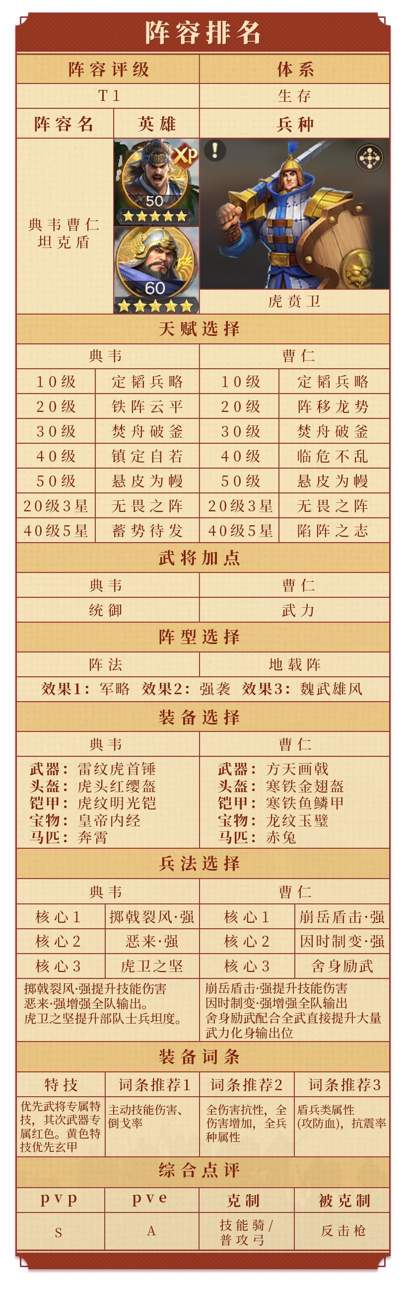 在生存控制体系中,推荐典韦+曹仁的组合。