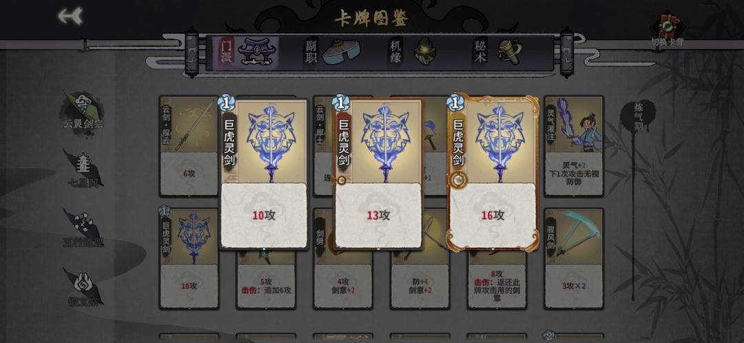经理论分析和实战证明,各境界常规门派牌存在标准模型,简称标模。升级收益也类似,我们取一级模和满级模差值的平均数,来衡量升级收益,称为升级均增模。以巨虎灵剑(7/10/13M)为标模参考牌,下面列出各境界标模和升级平均增模: