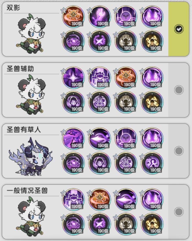 第四套是不带灵契和奶龙,依靠真理冥契回血的,虽然冥契这个技能虽然能一波回满血,但在触发前要抗两个回合才能触发,实际上极限推图的情况下很难抗住2回合,如果带了熊猫,回血虽然多了,但防御力不高。