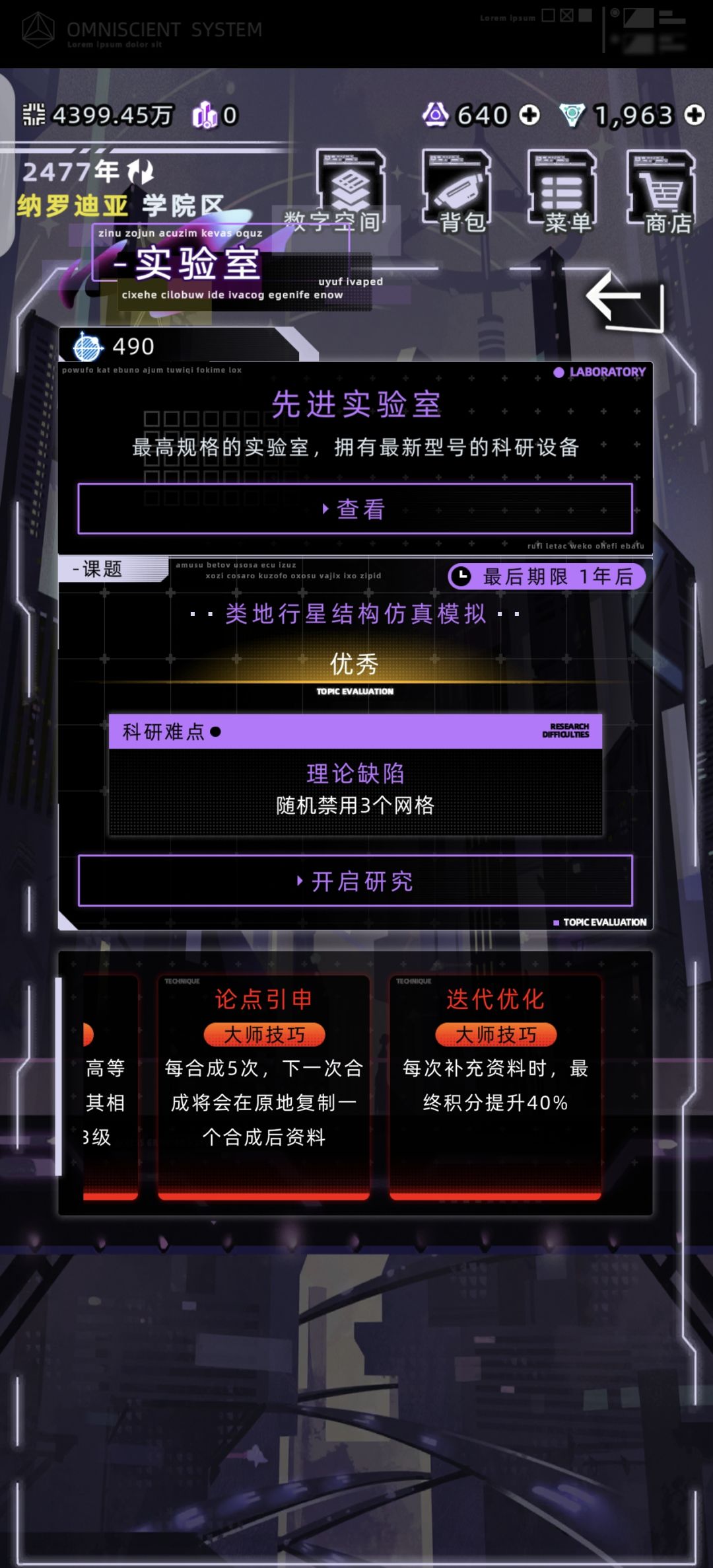 4、如果导师给的技巧不好可以用点数先重塑,一次资料研究没满可以学习加资料进度,加上广告的再来一次也可以保证两年研究三次。