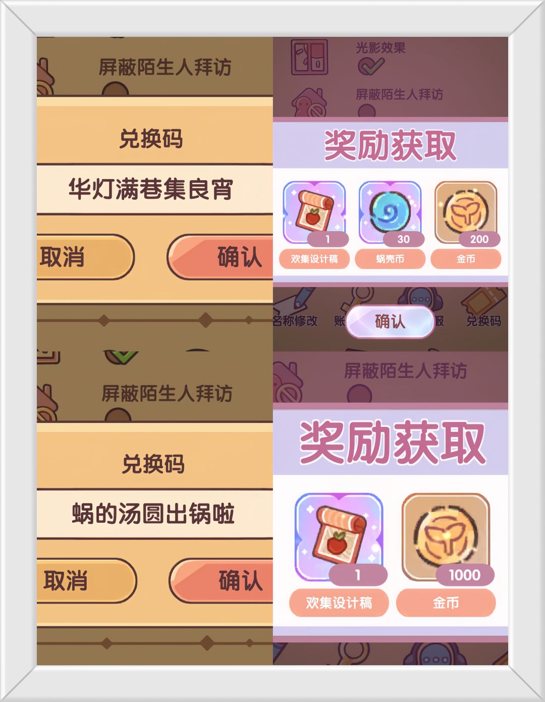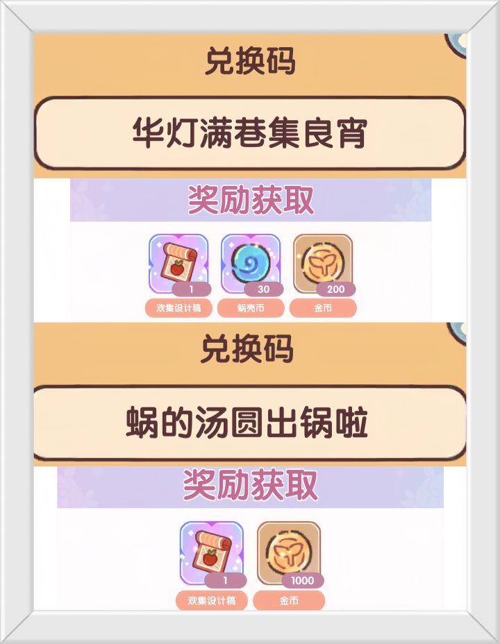 奖励:蜗壳币×30、欢集设计稿×1、金币×2000