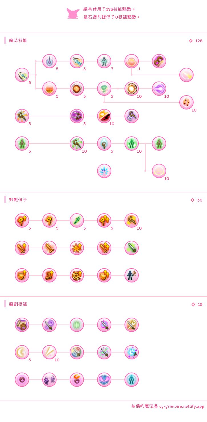后续慢慢补共鸣,远狙,勇气,超限(打皇女时最好有缩地不然会有点难受,省技能点不点也行),其它需要点什么技能移步正经魔炮攻略。
