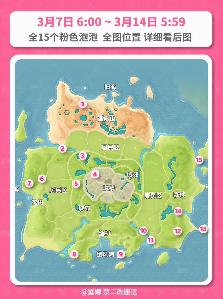 3.7-3.13全15个粉色泡泡位置 Pink Bubbles