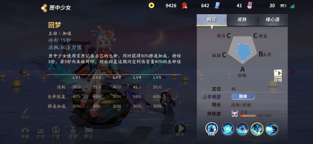 回复加加速;作为一个回复技能,虽然可以挡关键技能,但是团战第一时间开起来总没错,毕竟早用早cd,也防止自己突然暴毙;作为一个加速技能,可以突进连链子,追击留人,也可以吞队友后加速脱战,是一个比孟婆好用得多的救护车