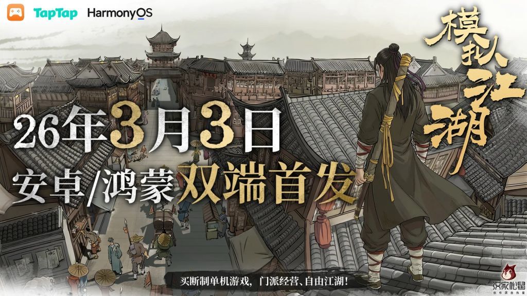 1.汉家松鼠跳票多年的竖屏武侠沙盒游戏模拟江湖终于发售,不过目前仅限tap安卓端和鸿蒙系统。