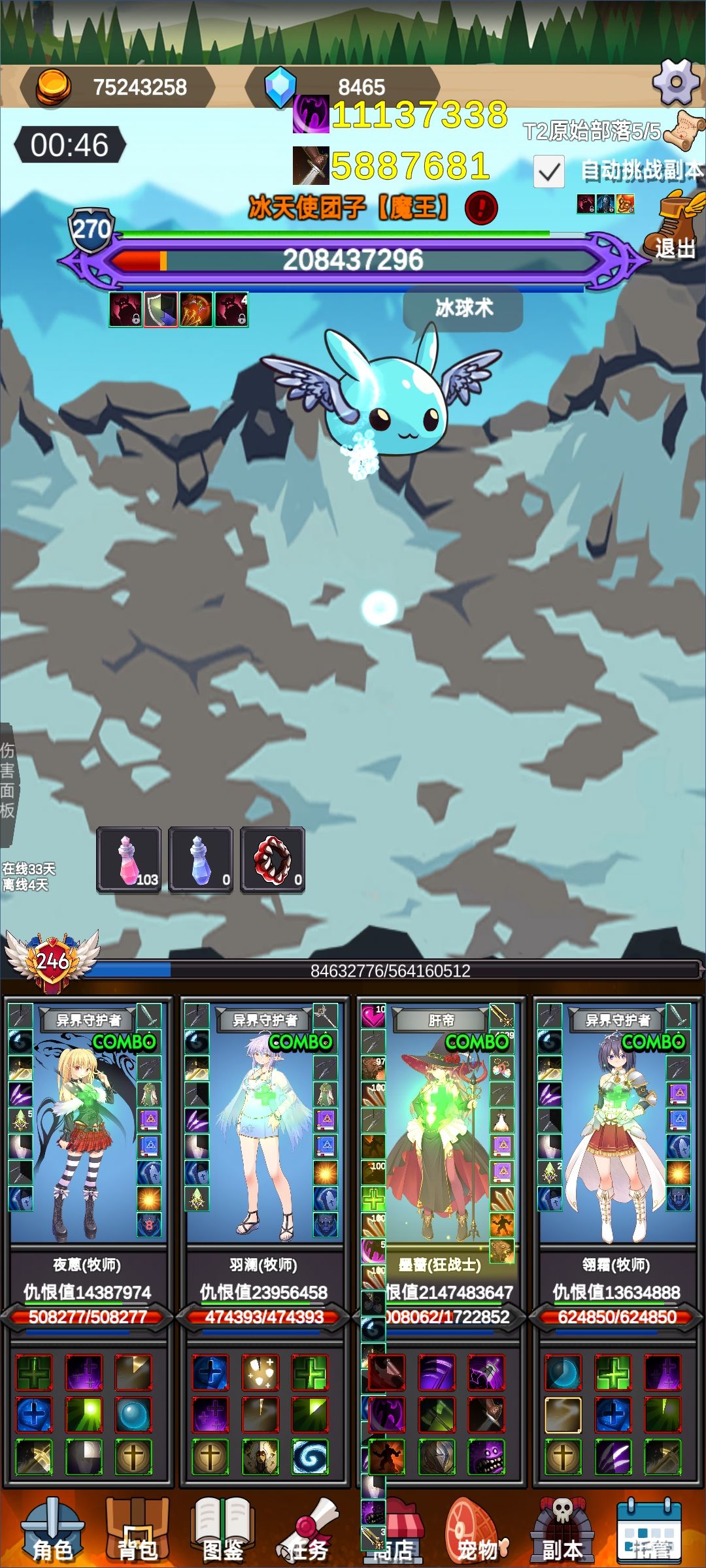 2,观察了下,小怪太猛,可以理解为魔力2的进阶版,所以撤掉了“优先boss”选项,狂战用了双泰坦。居然能基本稳定过,时间在60-70之间,算是能刷了。