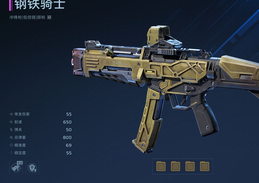 由于钢铁骑士是冲锋枪,并且其单体伤害并不高,只适合打群战,因此该武器只适合在僵尸猎场模式中使用。
