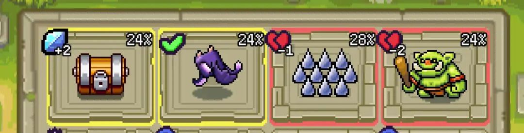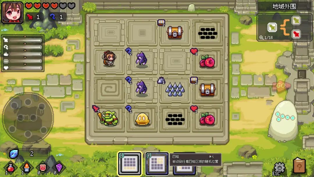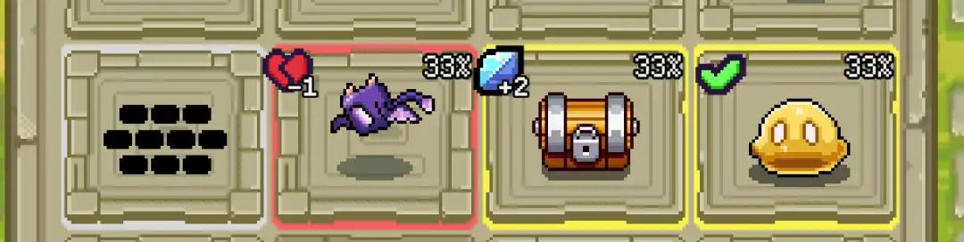 起初玩家走到哪里的概率几乎是一样的,只能选择大概的行、列,但随着游戏的进行,玩家会在商店、奖励等关卡获得新的走法、道具,将会改变玩家移动的概率,加上角色的属性、特殊关卡通关条件的改变,都会影响游戏移动的概率和选择,进一步考验玩家的策略性和风险管理