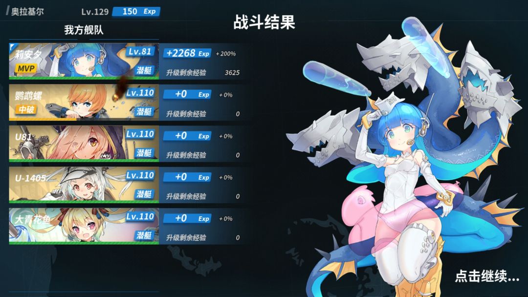 首先这个练级的要求挺高的,需要看脸,不过如果鱼队练度都偏低的话就可以随机选了,第一图要选到自己需要练级的鱼,然后开局我用哈巴库尔的副官技能刷了一个输出鱼,另外就是打boss前要调整好位置,因为打完进入二图以后位置会记录一图的排位顺序,所以要练级的鱼儿尽量靠前,打完第一关最好能有4-5个以上鱼。进入二图以后就切换奇尔沙治副官(技能可以增加本轮伤害),然后带鱼鱼反复在无血量加成的a3点刷,进去之前记得开技能就可以了。