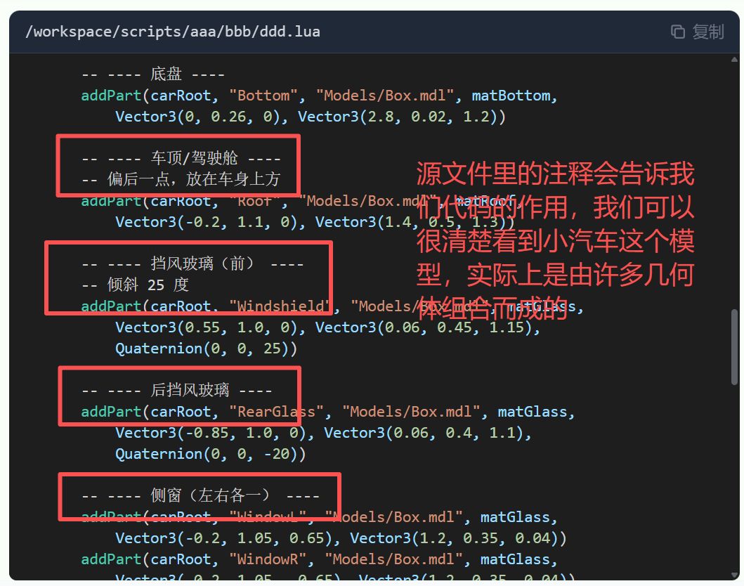 想要修改模型需要先查看源文件(参考图五),通过源文件我们会发现,小汽车实际上是由许多几何体组合而成的。