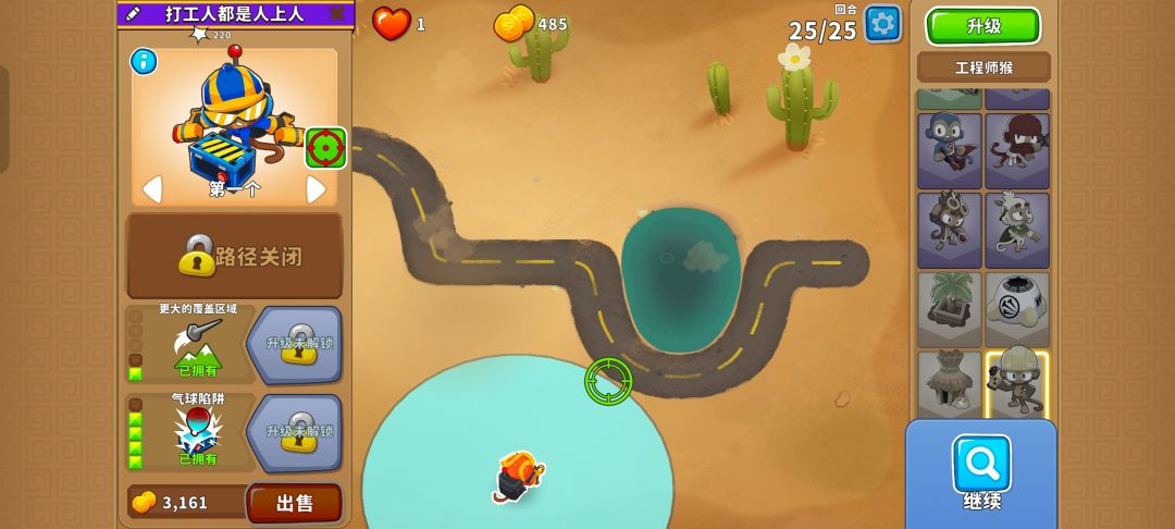 还能用014工程师猴,用箱子装下气球就行,不过不用让工程师猴攻击气球防止气球重生!