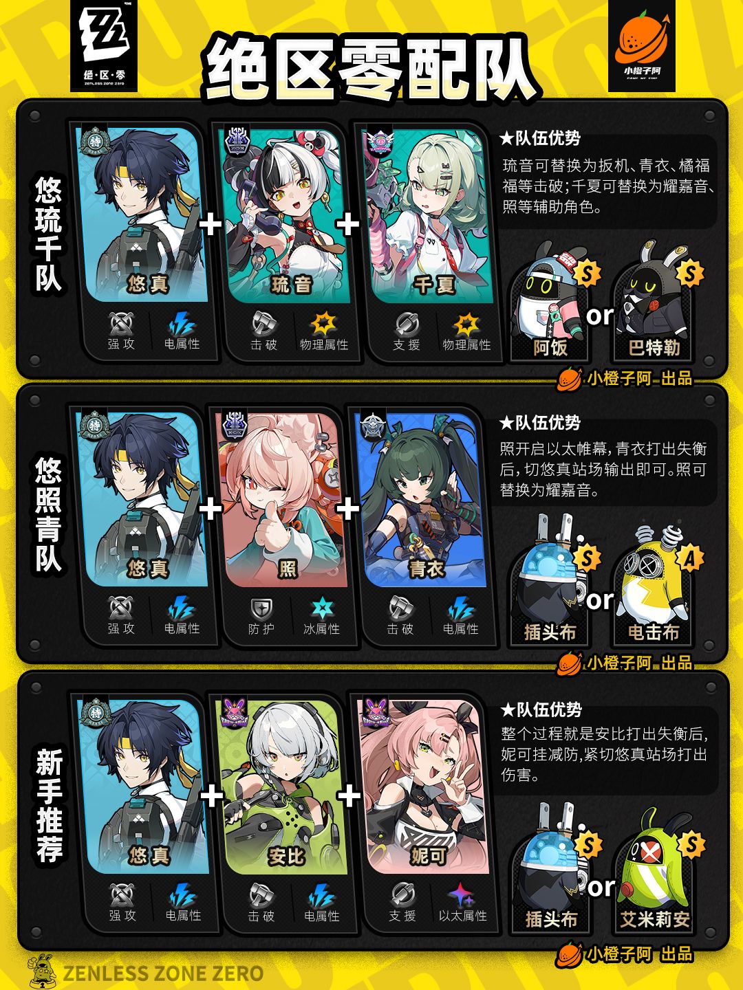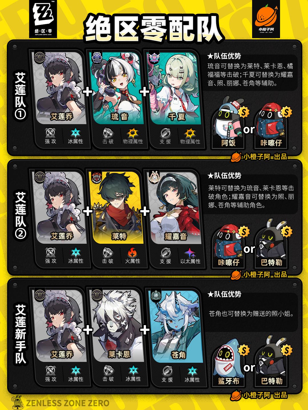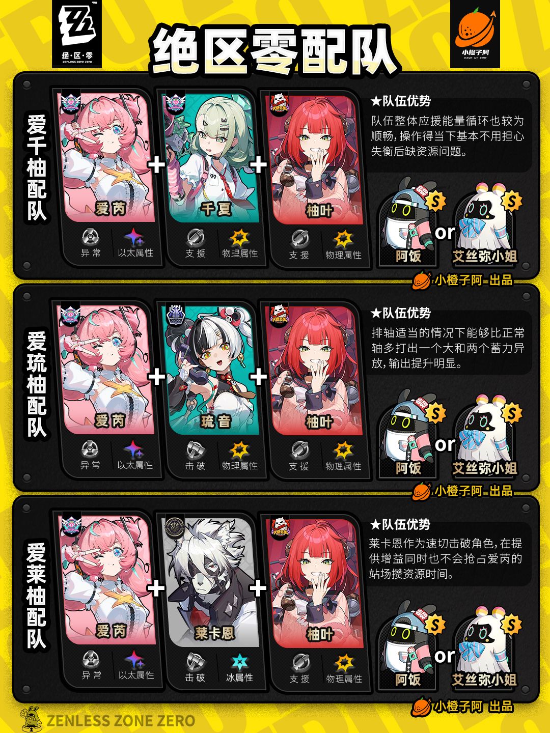这一期是全角色的配队情况,橙子加入了爱芮、千夏的一些配队,同时也将过去的一些配队进行了更新。好了,话不多说,先把所有配队呈现给大家。