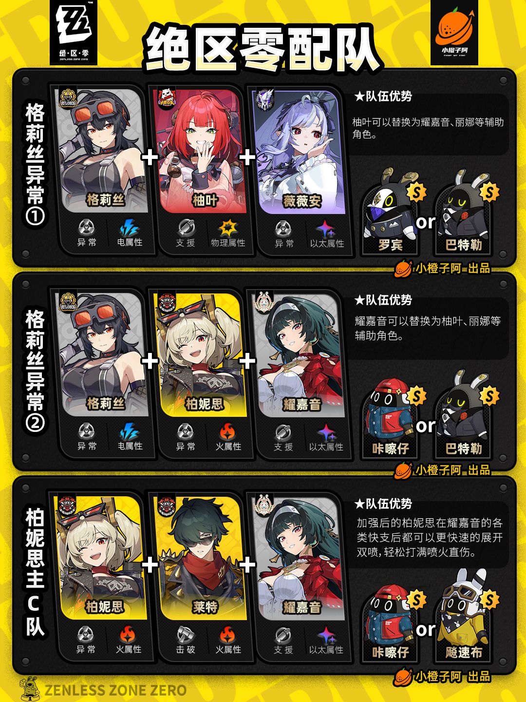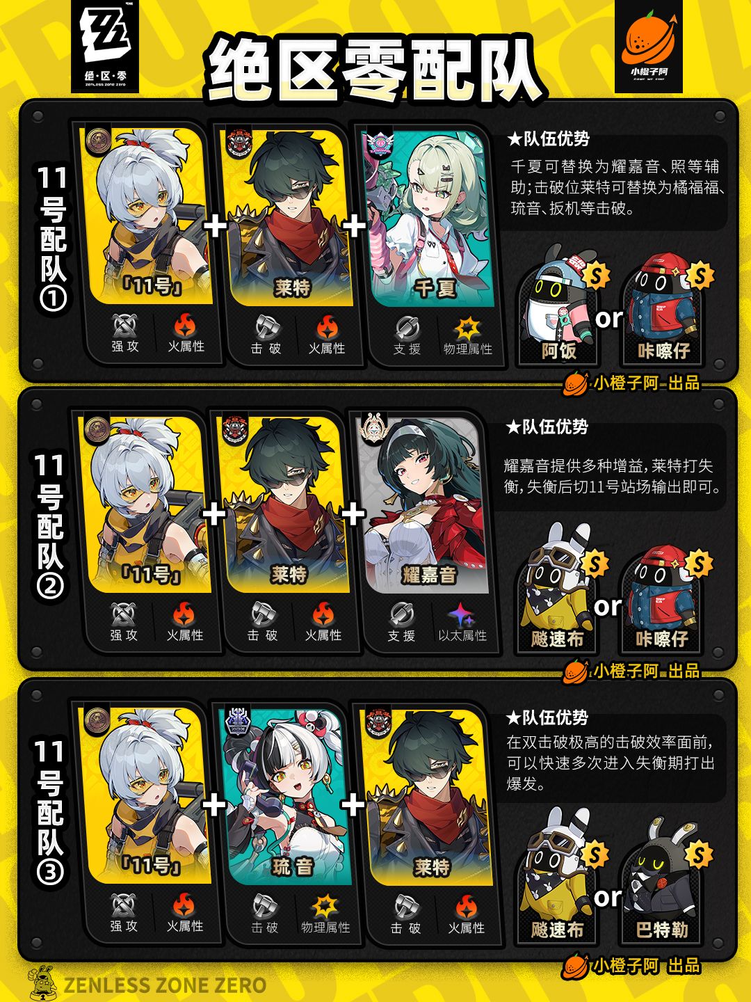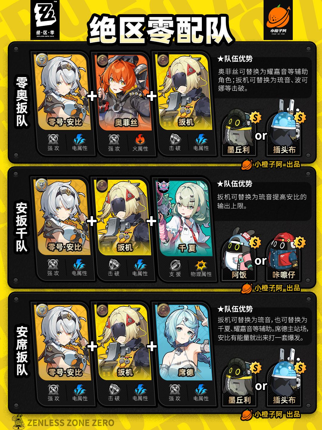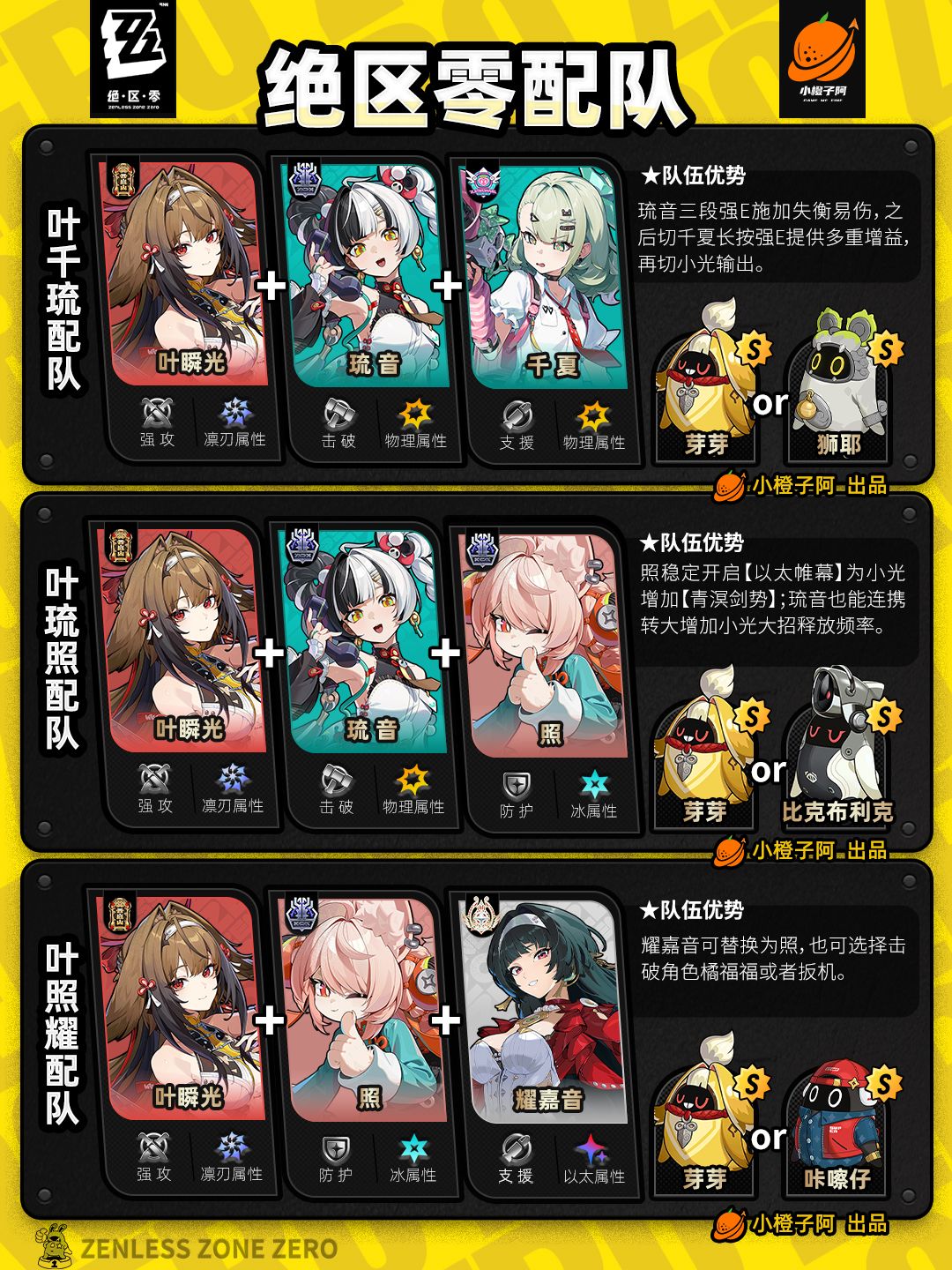 这一期是全角色的配队情况,橙子加入了爱芮、千夏的一些配队,同时也将过去的一些配队进行了更新。好了,话不多说,先把所有配队呈现给大家。