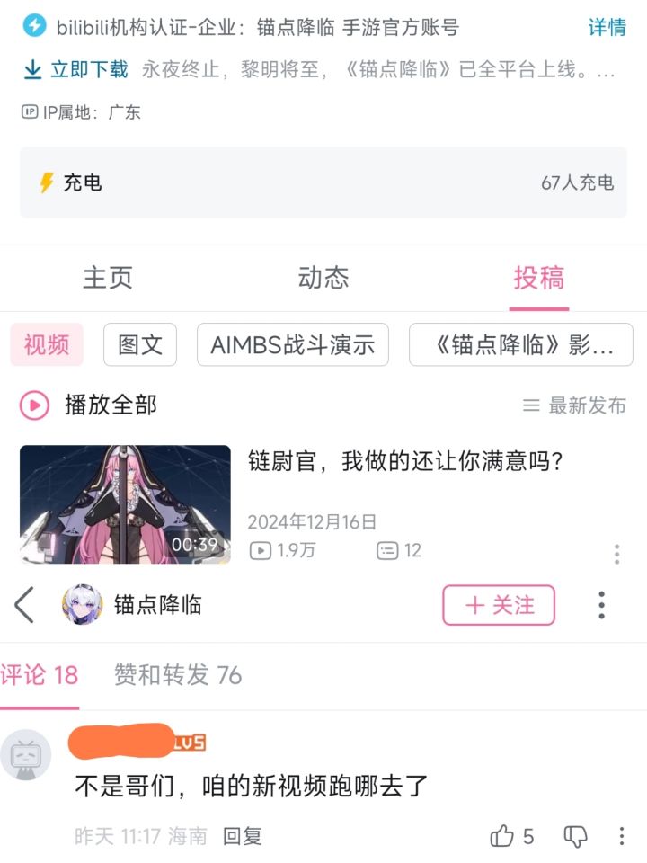 在此前继尘白禁区停服整改之后,锚点降临这边也有动静了。有老哥发现官方账号正在疯狂隐藏视频,这操作看着眼熟啊,跟尘白之前隐藏PV的节奏一模一样。