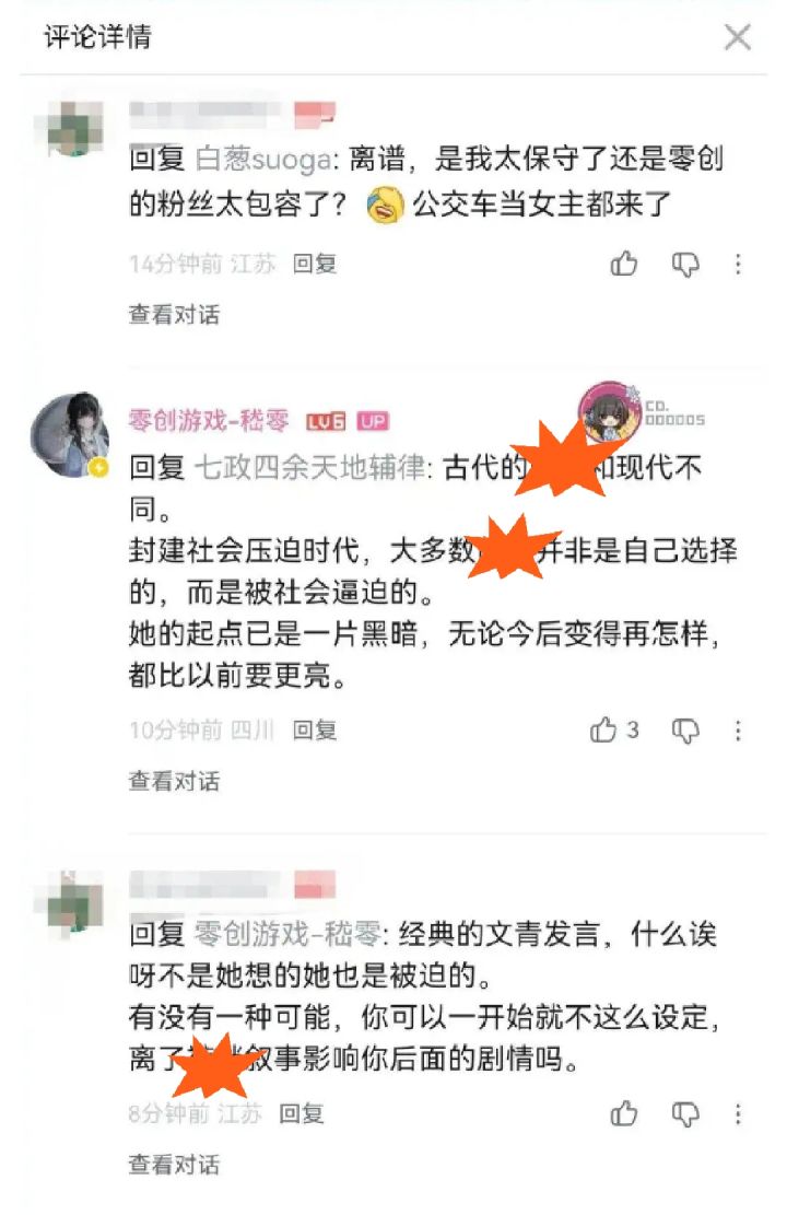 论坛里吵得凶外,圈外扩散后讨论也不少,有人说游戏策划是不是有什么特殊癖好,非得选这种设定。也有人说剧情还没出全,万一写得深刻呢。