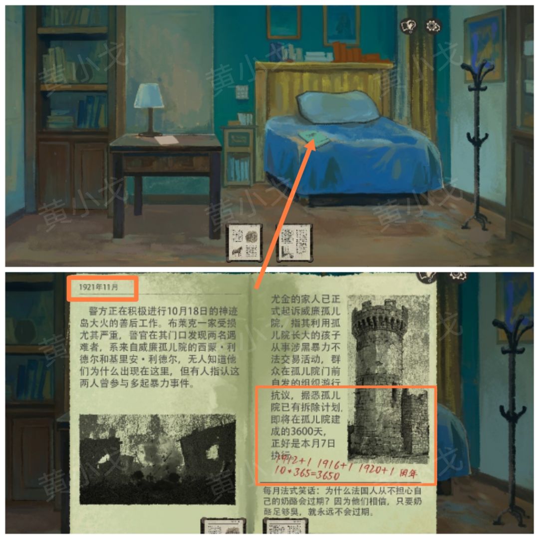 30.点击桌子抽屉上的密码锁,根据照片和杂志上的线索,输入密码:19111230,然后插入【钥匙】;打开抽屉,查看里面的档案