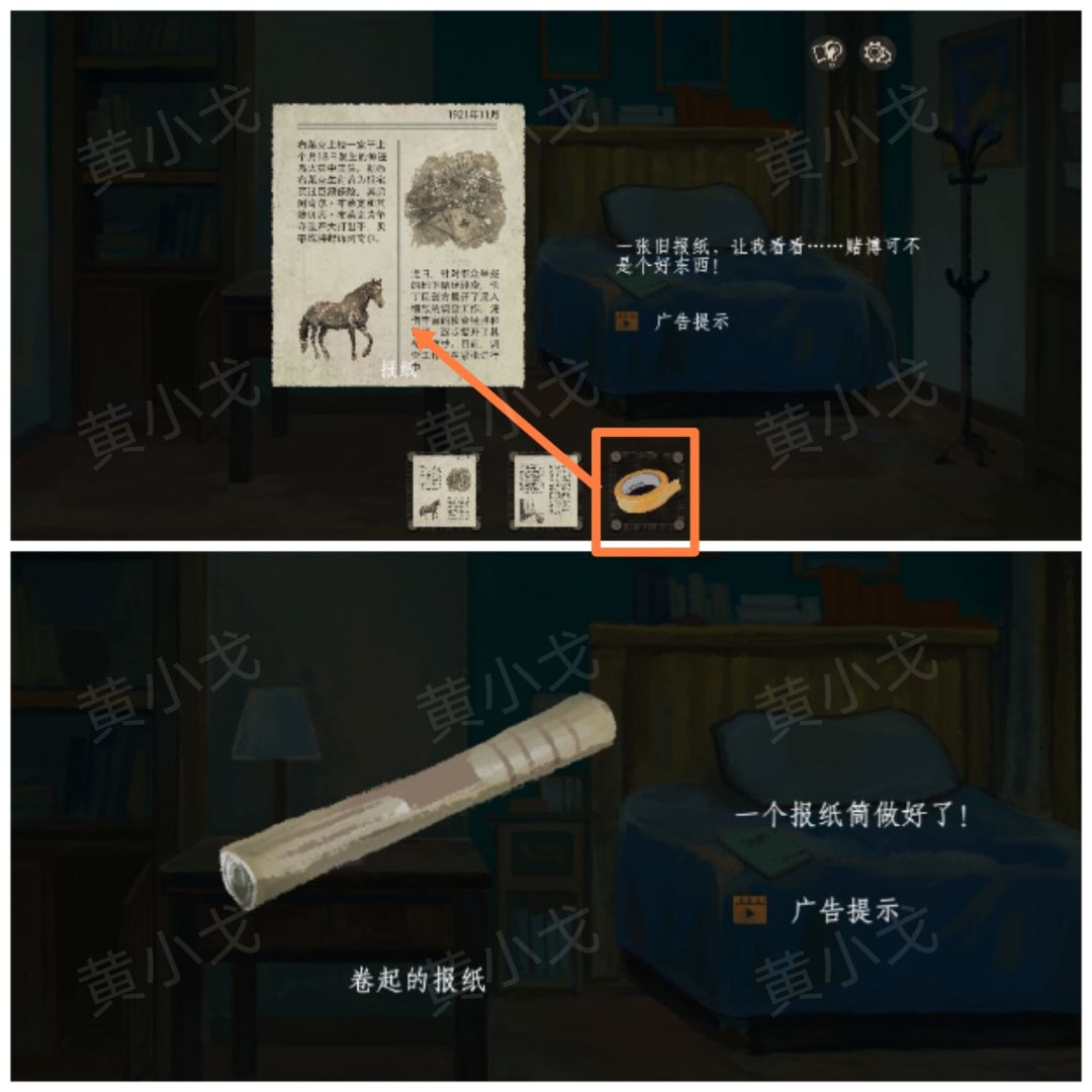 34.拾取柜子上的【香烟盒】和墙上的【报纸】