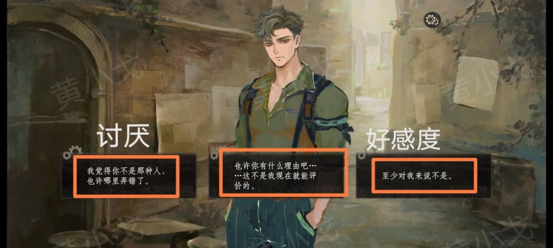 ②〈也许你有什么理由吧……这不是我现在就能评价的。〉:不是“好感度”也不是“讨厌”选项