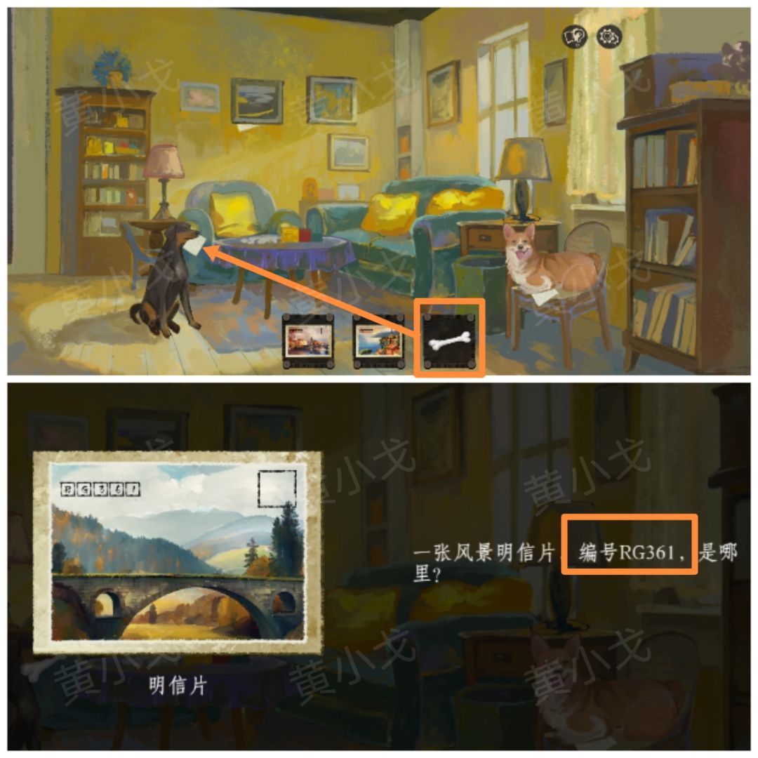 7.用【骨头】换取黑色狗狗嘴中的【明信片】